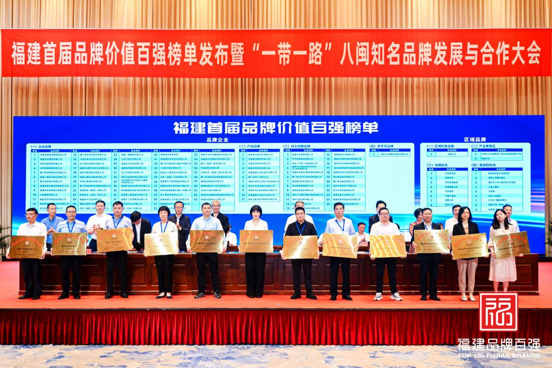圖:福建首屆品牌價(jià)值百?gòu)?qiáng)牌匾頒授(左六:燕之屋品牌中心副總監(jiān)楊航)