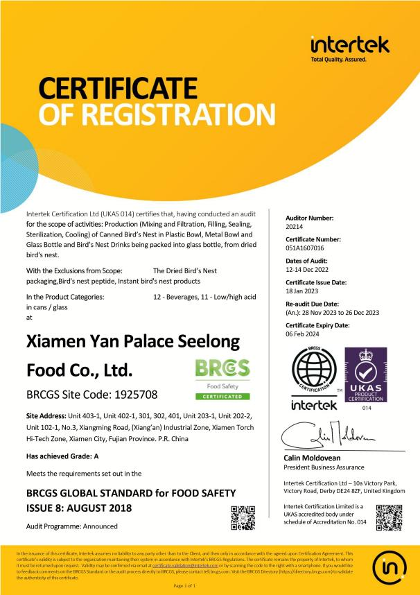 圖:燕之屋獲得BRC、IFS歐洲品質(zhì)雙認(rèn)證
