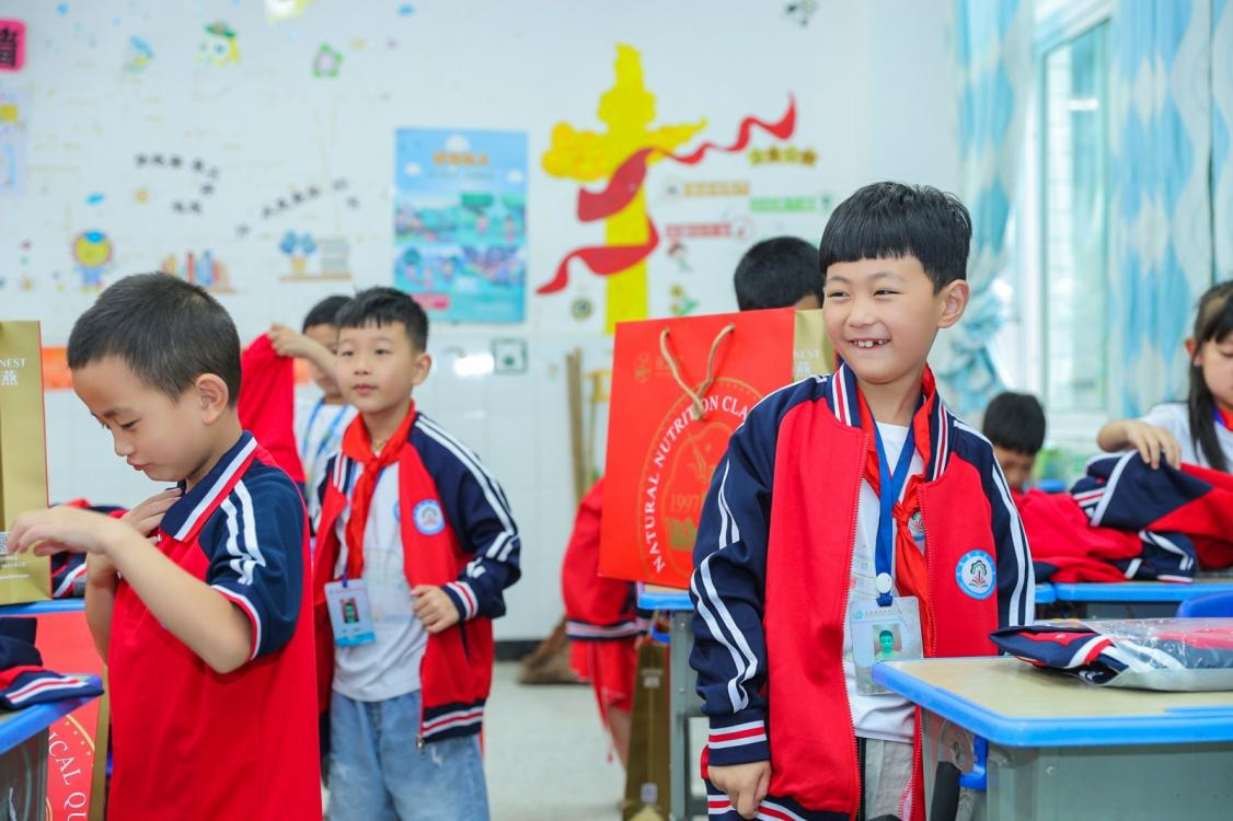 圖:興業(yè)小學(xué)的學(xué)生們穿上燕之屋捐贈(zèng)的新校服