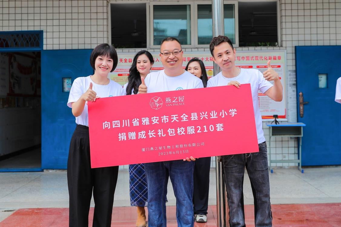 每一次善舉,都有影響他人的力量,每一份愛心,都會照亮他人的未來。燕之屋25年專注高品質燕窩,秉承“因愛而生,用愛滋養(yǎng)”的企業(yè)理念,聚焦兒童幫扶、女性成長、鄉(xiāng)村振興等多項公益事業(yè),不斷踐行企業(yè)社會責任。2019年起,燕之屋在甘肅省廣河縣先后建設了兩期燕之屋廣河縣鄉(xiāng)村就業(yè)工廠,共幫助277人脫貧,并在2021年榮獲“福建省脫貧攻堅先進集體”榮譽稱號;2021年,燕之屋攜手中國婦女發(fā)展基金會,共同成立“燕小屋公益成長計劃”,針對西部地區(qū)開展婦女兒童幫扶以及支教等精神建設活動;2022年,燕之屋通過“燕小屋公益成長計劃”支持“天才媽媽·夢想工坊“,助力傳承貴州苗繡非物質文化遺產以及女性成長,打造成“公益扶持+女性發(fā)展+文化傳承”的一體化發(fā)展樣本;今年6月,燕之屋攜手上海人民廣播電臺流行音樂頻率動感101第30屆《東方風云榜》,共赴四川雅安天全縣興業(yè)小學開展音樂支教活動,并向興業(yè)小學捐贈校服210套,為孩子們帶去歡樂與關愛。