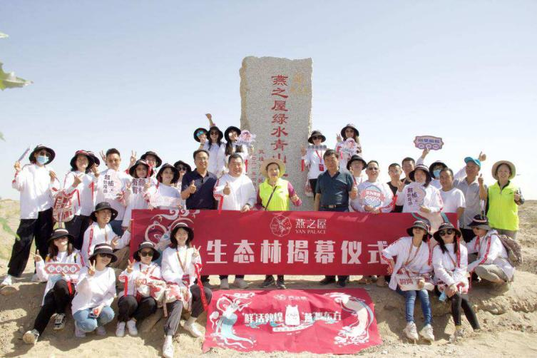 2002年,NPO綠色生命組織理事長易解放踏上植樹造林的公益之路,20余年間,從內(nèi)蒙古到甘肅,累計(jì)綠化4萬畝沙漠和戈壁,在綠色生態(tài)公益組織的帶動下,一批又一批的志愿者加入到“造綠”的隊(duì)伍中。作為燕窩行業(yè)“領(lǐng)頭燕”,燕之屋堅(jiān)持奉行“人與自然和諧共生”的生態(tài)理念,以實(shí)際行動守護(hù)青山綠水。2021年,燕之屋接過“綠色生命”接力棒,攜手NPO綠色生命組織理事長易解放走進(jìn)敦煌,與二十多位燕之屋粉絲共同種下樹苗,一起見證燕之屋綠水青山生態(tài)林揭碑儀式,并向NPO綠色生命環(huán)保公益組織捐款,共同為敦煌筑起防風(fēng)固沙生命線,守護(hù)人與自然和諧之美。