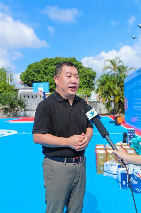 借著新球場落成之際,一堂AI智能“神投手”投籃訓(xùn)練教學(xué)課隨即展開。廣東省第十三屆政協(xié)委員、中國籃球名宿、廣東省書豪李群體育事業(yè)公益基金會理事長李群現(xiàn)場示范、教學(xué),以輕松、快樂的方式帶領(lǐng)孩子們率先感受新球場帶來的美好體驗,現(xiàn)場陣陣掌聲與歡笑聲也詮釋著童心逐夢、志在未來。燕之屋執(zhí)行董事、總裁李有泉還在現(xiàn)場接受了陽東電視臺、陽東綜合頻道記者的采訪。