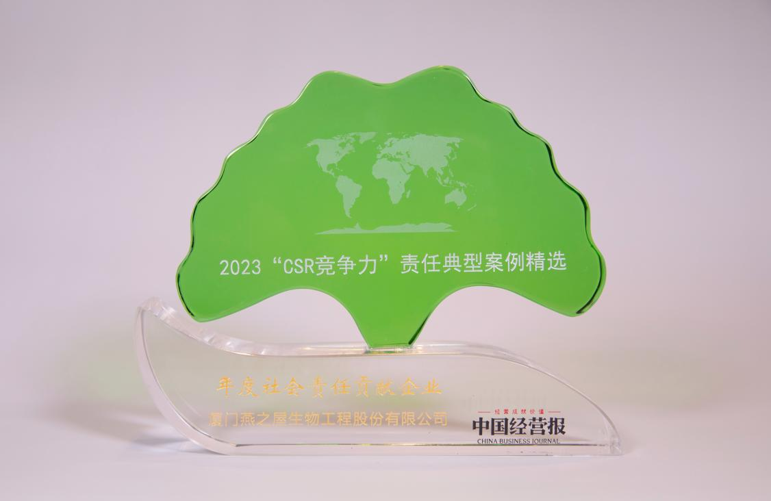 圖:燕之屋榮獲2023“CSR競爭力”責(zé)任典型案例精選“年度社會責(zé)任貢獻(xiàn)企業(yè)”