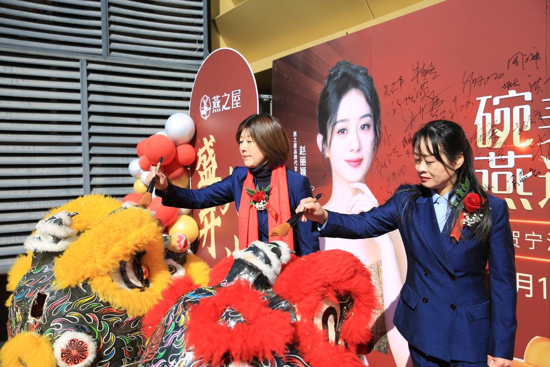 致辭結(jié)束后,現(xiàn)場領(lǐng)導(dǎo)與嘉賓上臺剪彩,一同剪下手中的金色綢帶,掀開燕之屋寧波慈溪旗艦店的嶄新篇章。隨著金剪開剪,彩帶飄揚、祥獅吐瑞,燕之屋寧波慈溪旗艦店正式啟幕。開業(yè)盛典上,鼓聲響起,獅頭威武雄壯、獅身矯健剛勁,為開業(yè)典禮增添了壯麗氣勢,賦予新店無限希望與活力。在現(xiàn)場來賓的見證下,兩位領(lǐng)導(dǎo)共同為燕之屋寧波慈溪旗艦店進(jìn)行了點睛儀式。