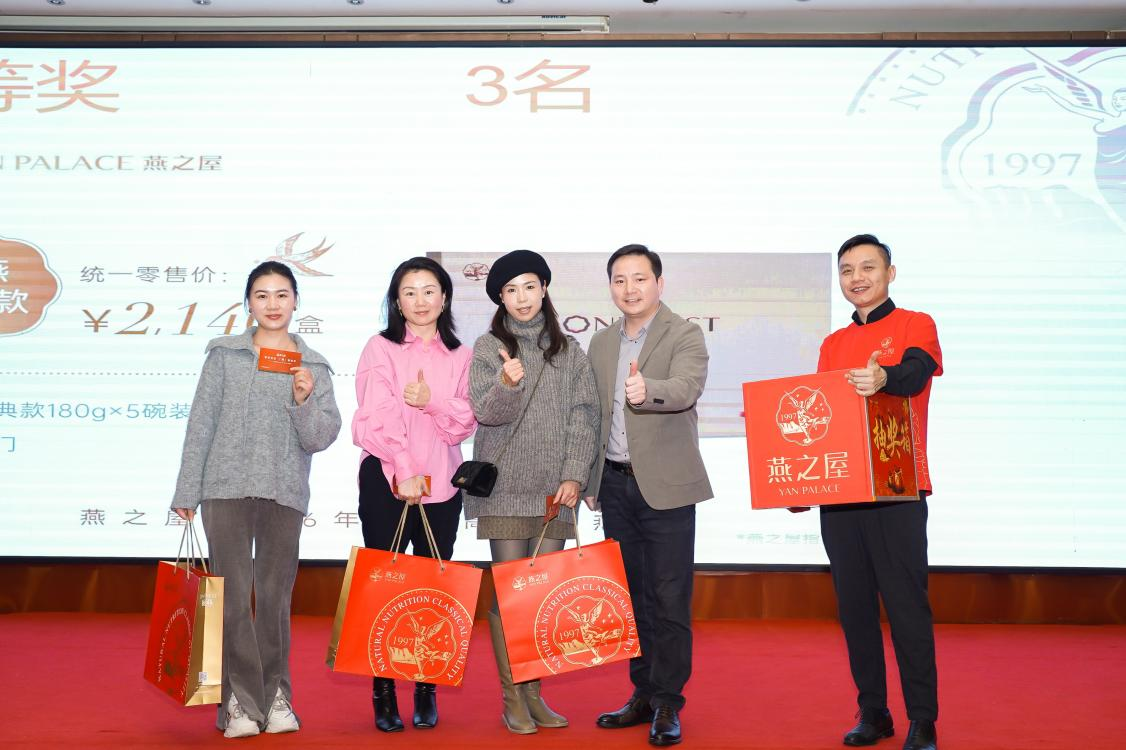 為感謝大家長期的支持與厚愛,燕之屋特別設(shè)置了抽獎和游戲環(huán)節(jié),精心準(zhǔn)備了豐厚大禮,為大家開啟新一年的好運(yùn)氣。在場嘉賓積極參與、踴躍互動,福利與幸運(yùn)紛紛降臨,輪番的驚喜抽獎讓現(xiàn)場氛圍持續(xù)升溫,晚宴下半程高潮迭起。