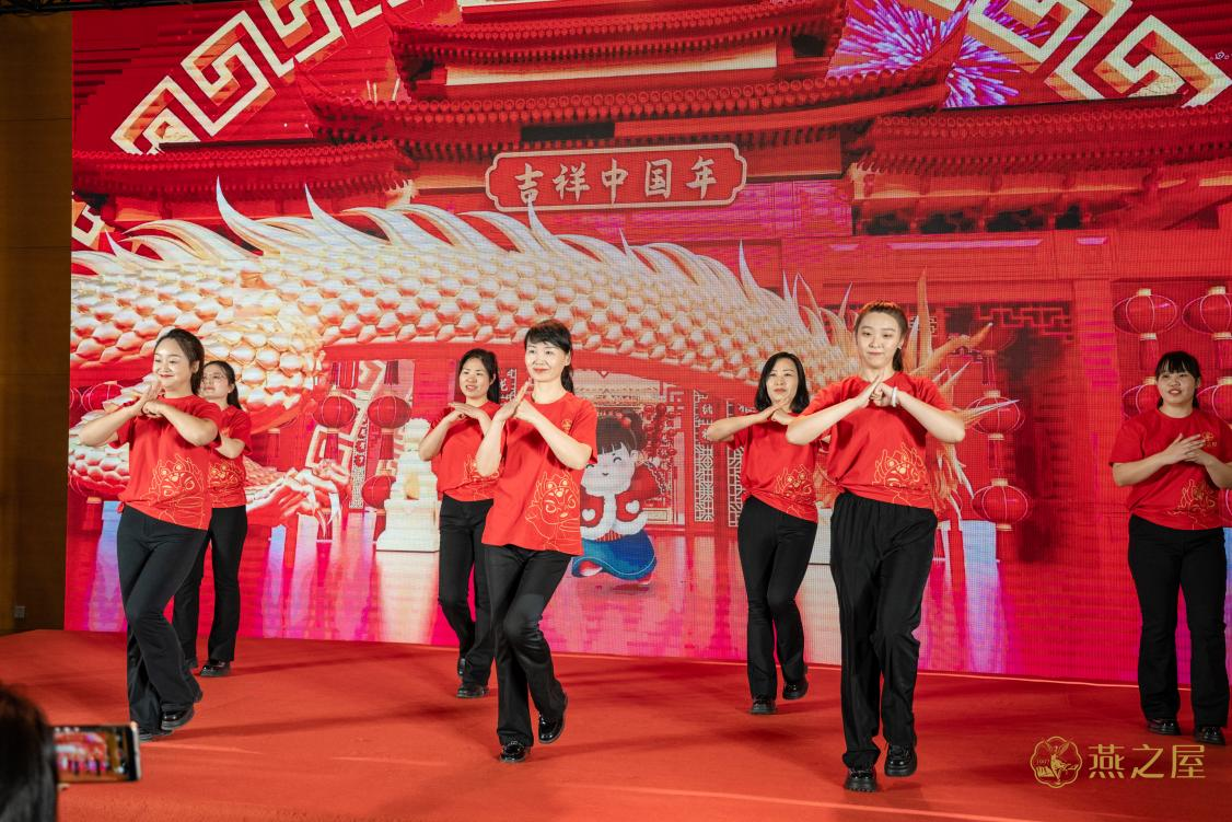 宴客廳流光溢彩、音樂(lè)環(huán)繞,彌漫著典雅高貴的氣息。燕之屋石家莊市場(chǎng)經(jīng)理賈夢(mèng)橋作開(kāi)場(chǎng)致辭,對(duì)諸位嘉賓的到來(lái)表示歡迎和感謝。隨后,燕之屋石家莊市場(chǎng)客服部帶來(lái)開(kāi)場(chǎng)舞,中國(guó)風(fēng)裝扮與表演營(yíng)造濃濃新年味,共賀賓客吉祥如意。