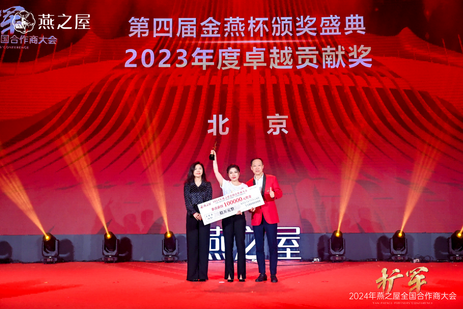 大會前夕,燕之屋特別舉辦擴軍·2024年燕之屋全國合作商大會歡迎晚宴,以及中央廣播電視總臺云聽&燕之屋聯(lián)合數(shù)字黨建室暨愛的詩篇特別歌詠活動。知名主持人黃薇,著名主持人、朗誦藝術(shù)家陳鐸,國家一級演員宗平,知名歌手黃英、蔡淳佳呈送精彩節(jié)目,共譜愛的詩篇。大會當晚,擴軍·2024年燕之屋全國合作商大會答謝晚宴傾情開啟,并同步舉行第四屆金燕杯頒獎盛典,表彰、嘉獎為全國市場做出了突出表現(xiàn)的個人與市場,感謝杰出伙伴為燕之屋點亮堅實前行的璀璨坐標?,F(xiàn)場,2023年度卓越貢獻獎、2023年度杰出貢獻獎、2023年度金牌終端獎、2023年度金燕薈先鋒獎、2023年度創(chuàng)新突破獎等眾多獎項花落各家,再一次激發(fā)全員熱情與斗志。