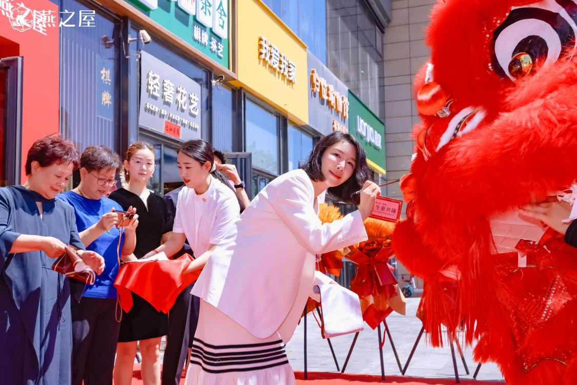 燕之屋股東、燕之屋北京市場董事長薛一瑤與北京廣播電視臺交通廣播中心主任延安共同上前為醒獅點睛、接青納福,寓意點金財通,祈盼福運呈祥。此外,燕之屋還為進店顧客準備了精美茶歇,答謝消費者的支持與厚愛。