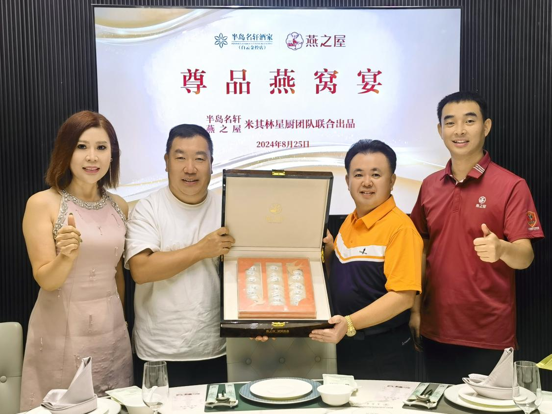 燕之屋26年專注高品質(zhì)燕窩,秉承“一碗好燕窩,滋潤天下人”的品牌初心,以前沿科技創(chuàng)新燕窩滋養(yǎng)體驗,以高品質(zhì)產(chǎn)品和服務(wù)滿足消費(fèi)者多元需求,引領(lǐng)更多人步入燕窩賦予的美與健康生活方式。2021年,燕之屋成為中國國家擊劍隊指定燕窩產(chǎn)品;2023年,燕之屋于港交所成功上市(股票代碼:01497.HK),贏得市場的喜愛與信賴。半島名軒酒家(白云金控店)是半島餐飲管理集團(tuán)有限公司投資經(jīng)營、米其林星廚團(tuán)隊主理的一家品牌粵菜食府,以美饌珍饈、優(yōu)質(zhì)服務(wù)、愜意環(huán)境為賓客提供高品位餐飲新體驗。燕之屋與半島名軒酒家(白云金控店)牽手,是粵菜風(fēng)味與中式滋補(bǔ)的碰撞,是精奢格調(diào)與藝術(shù)審美的疊加,二者匠心錘煉呈獻(xiàn)一場尊品燕窩宴,打造宴請尊貴賓客的至高禮遇。