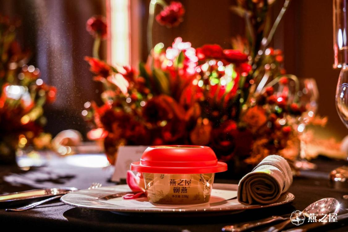 席間,燕之屋國際奢牌設(shè)計師春節(jié)限定款——碗燕·尊享款(158g)作為晚宴首道佳肴,開啟美妙滋養(yǎng)“食”刻。自2012年,燕之屋創(chuàng)新推出高端燕窩品牌“碗燕”以來,碗燕·尊享款不斷創(chuàng)新品質(zhì)高度,刷新燕窩品質(zhì)天花板。碗燕·尊享款(158g)以跨越6000里*甄選的優(yōu)質(zhì)原料(*在百度地圖中測距,廈門市燕之屋絲濃生物科技有限公司到燕之屋特鉆產(chǎn)區(qū)之一中加里曼丹省的距離約為6226里,故稱為跨越6000里路),呈獻真摯心意,每一份碗燕·尊享款(158g)食用燕窩投料不低于6.7g,燕窩酸含量不低于496mg,濃濃滋養(yǎng),造就東方滋養(yǎng)尊享禮,予私宴至臻享受。在以“時間的禮物”為主題的餐單中,燕之屋匠心甄選原產(chǎn)自印度尼西亞的高品質(zhì)燕窩,由南京麗思卡爾頓酒店主廚精心烹調(diào),呈現(xiàn)一席高定燕窩宴。柔美燈光與珍饈至味交織共舞,賓客們笑語盈盈,沉浸在如詩如畫的燕窩美饌間,每一刻都洋溢著美好與愜意。