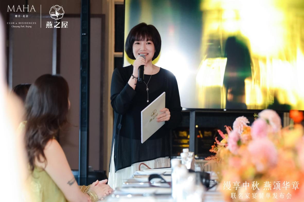 燕之屋公關(guān)總監(jiān)楊航則在致辭中闡釋了這次跨界合作的文化深意:“燕之屋與如此杰出的伙伴合作,正是基于雙方對品質(zhì)、細(xì)節(jié)與人文關(guān)懷的共同追求。我們都認(rèn)同,真正的高級,在于將真誠融入服務(wù),將文化寓于美食,讓每一次相聚,承載更深厚的情感與記憶。此次聯(lián)名中秋家宴菜單,是我們雙方團(tuán)隊(duì)多次溝通、靈感碰撞的成果。愿這一席宴,成為這個(gè)秋天您與家人、摯友之間溫暖相聚的美好注腳。”