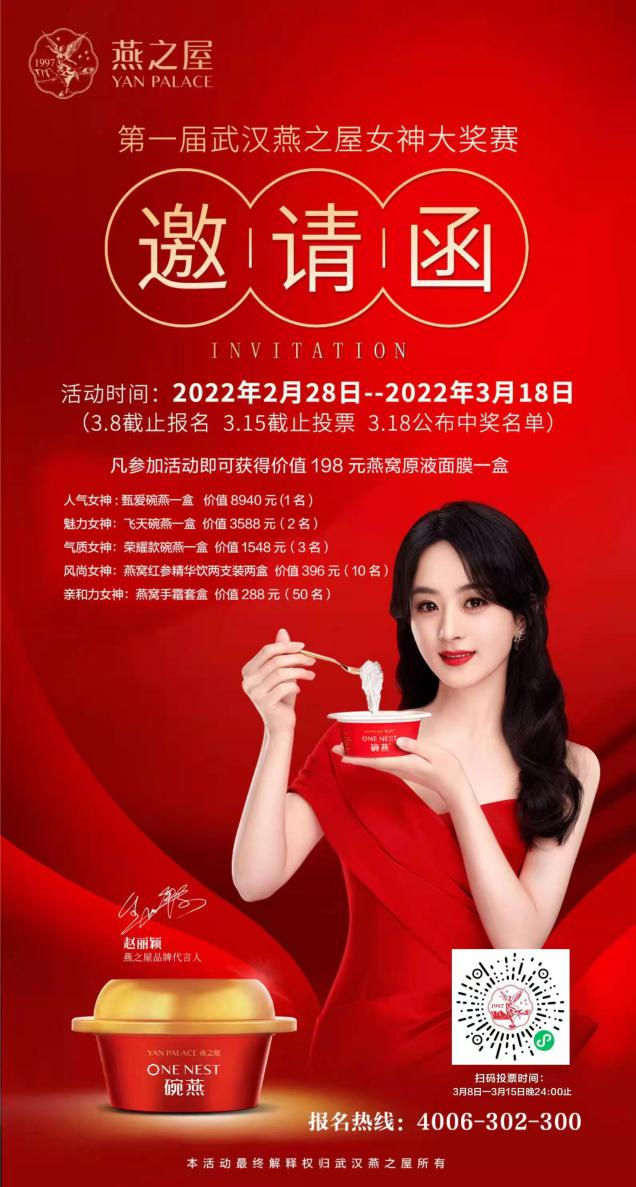 此次,燕之屋武漢市場借由女神大獎(jiǎng)賽,傳遞給每一位參賽者“活出你的漂亮”的活動(dòng)宣言,正如燕之屋品牌代言人趙麗穎般專注自我,認(rèn)真生活。趙麗穎作為燕之屋品牌代言人,不僅是實(shí)力派演員,更擁有著非常高的知名度和國民度。她在演藝事業(yè)上兢兢業(yè)業(yè),用心塑造每一個(gè)角色,出道至今,趙麗穎用一個(gè)個(gè)鮮活的熒幕形象,不斷突破自己,勇敢做自己,讓每一次突破都變得鮮活、漂亮。
