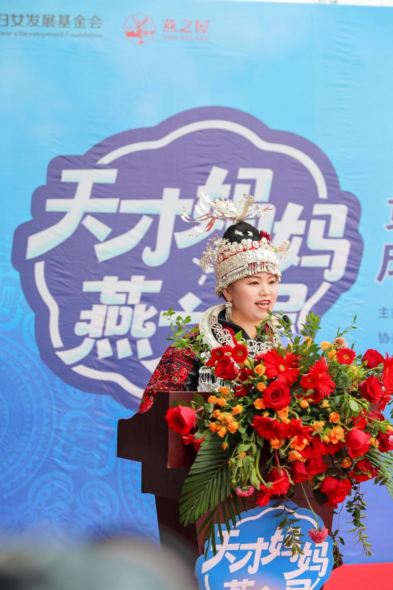圖:燕之屋“天才媽媽”貴州苗繡夢想工坊主理人劉英發(fā)言