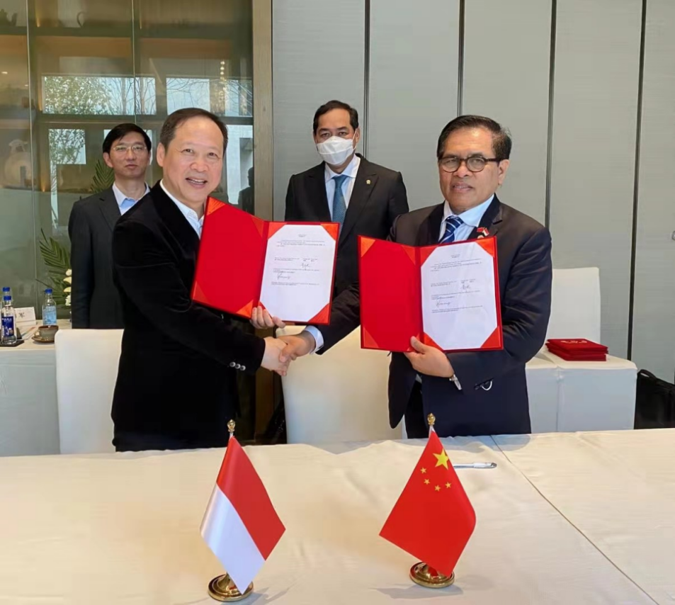 圖:印尼駐華大使周浩黎(前排右)與燕之屋董事長黃健(前排左)簽訂協(xié)議
